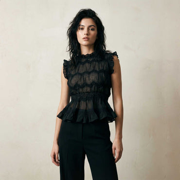 “Mara” Black Belted Lace Blouse