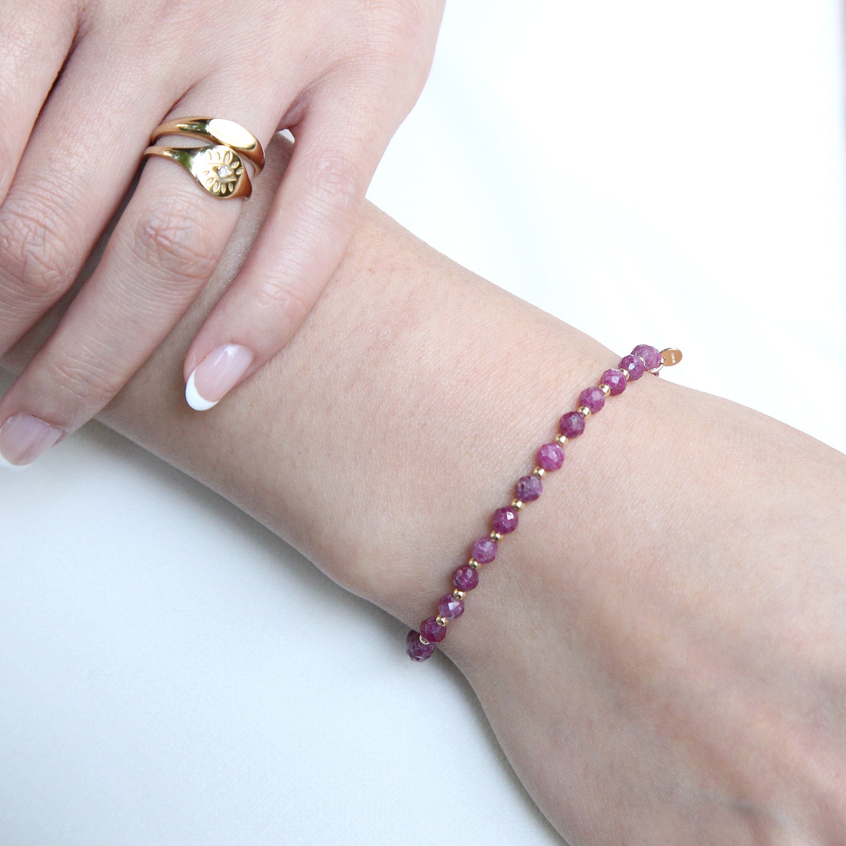 "Remi" 2mm Diamond-Cut Bead Ruby Bracelet